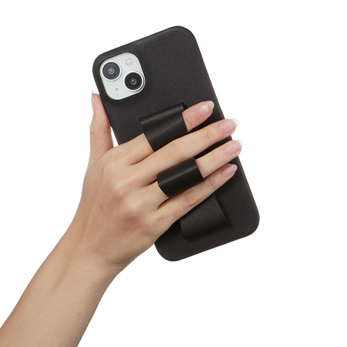 ●ケースの背面にあるリボンに指を通すとスマホリングのように使用でき、手から落下する心配がありません。