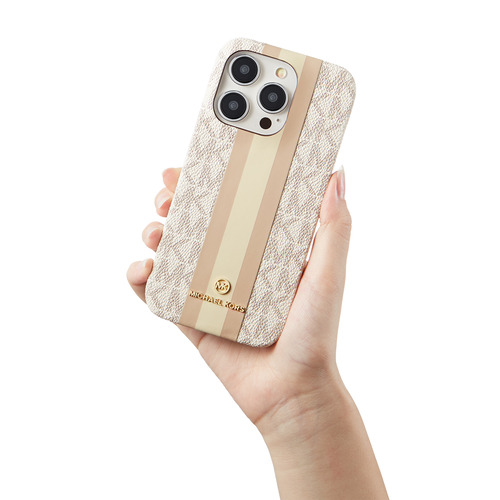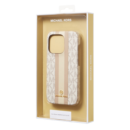 MICHAEL KORS Slim Wrap Case Stripe for MagSafe for iPhone 15 Pro [ Vanilla ] MKSTVNLWPIP2361P ホワイト