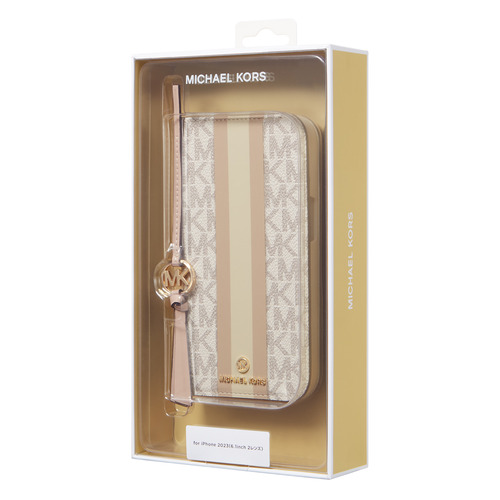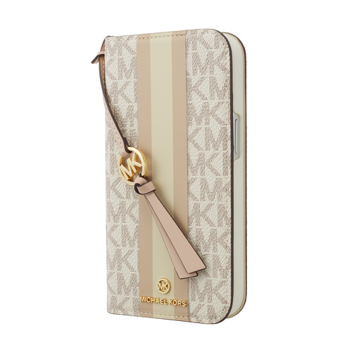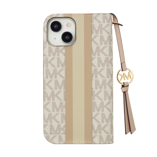 MICHAEL KORS Folio Case Stripe with Tassel Charm for Magsafe for iPhone 15 [ Vanilla ] MKSTTCVNLFLIP2361 ホワイト