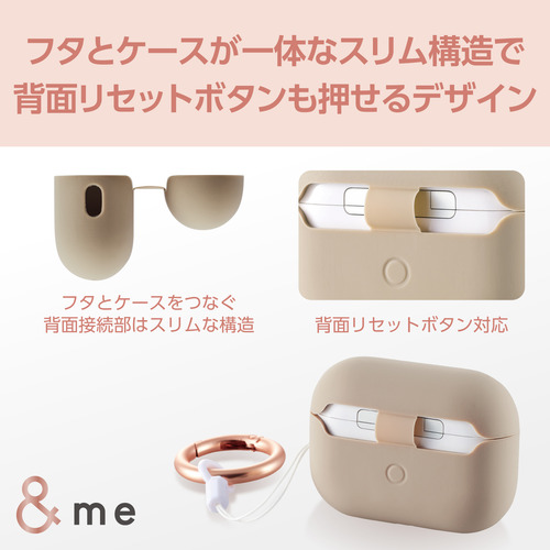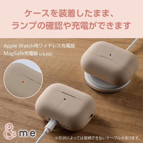 ●ニュアンスカラーで落ち着いた印象の&meシリーズ AirPods Pro (第2世代)用シリコンケースです。日々のファッションに合わせやすい光沢とトーンを抑えた質感と色味。持ち運ぶ際にコーディネートのアクセントとしても楽しめます。MagSafe充電に対応し、やわらかいシリコン素材で本体をしっかりと守ります。ケースを装着したままで、ワイヤレス充電や純正ケーブルでの充電が可能です。
