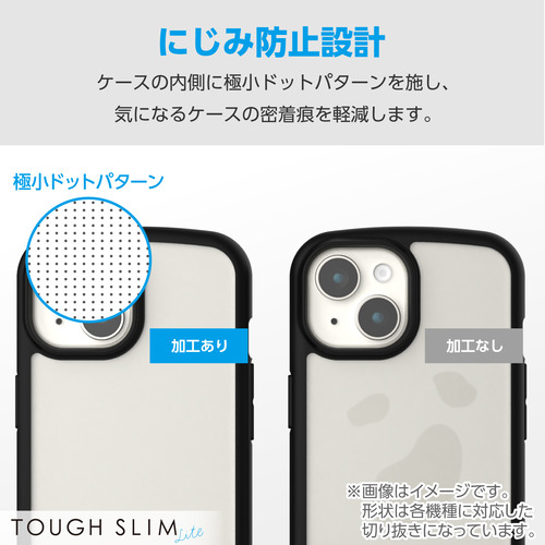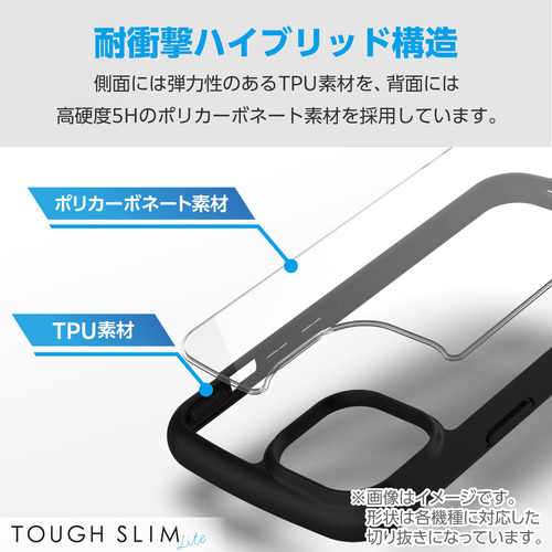 ●全周に配置した独自設計のエアークッションが衝撃を吸収し、側面に弾力性のあるTPU素材を、背面に高硬度のポリカーボネート素材を使用した、TOUGH SLIM LITEケースです。