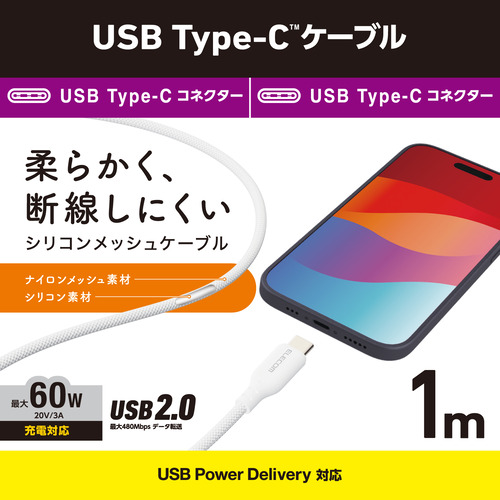 エレコム MPA-CCSSM10WH USB Type-C(TM)ケーブル シリコンメッシュタイプ 1.0m MPACCSSM10WH