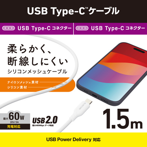 エレコム MPA-CCSSM15WH USB Type-C(TM)ケーブル シリコンメッシュタイプ 1.5m MPACCSSM15WH