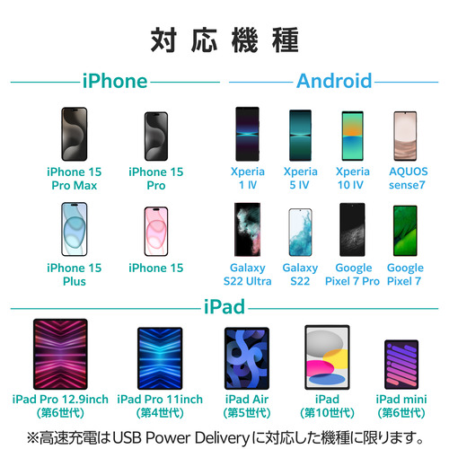 対応機種:60W以下の入出力に対応するUSB Type-C(TM)ポートを持つパソコン・充電器・モバイルバッテリーおよび、USB Type-C(TM)ポートを持つスマートフォン・タブレットなど ※USB Type-C and USB-C are trademarks of USB Implementers Forum