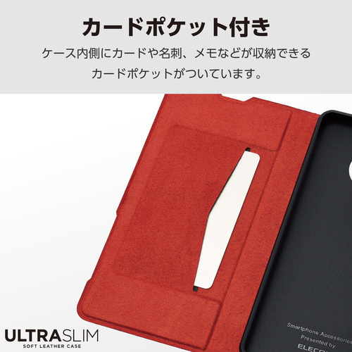 ●端末の薄さや軽さを損ねない、薄型・超軽量なウルトラスリムタイプのソフトレザーケース(手帳型)です。
