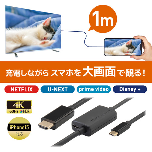 ●スマホを充電しながら大画面で観る! USB Type-C to HDMI変換ケーブル