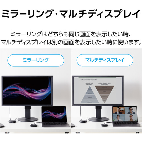 ●パソコンご利用時は、ミラーリング・マルチディスプレイのどちらの出力画面設定でもご利用いただけます。