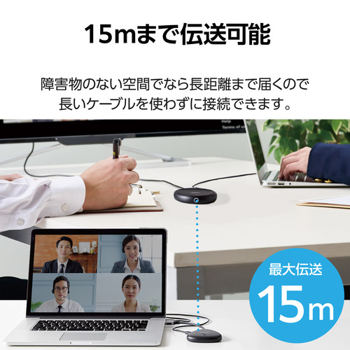 ●1台のディスプレイやプロジェクターなどのHDMI搭載映像機器に映像・音声を出力できるワイヤレスHDMIエクステンダー(無線HDMI送信機)です。アプリやドライバーは不要のワンタッチ接続で、最大8台までの送信機を1台の受信機にペアリングして増設できます。 ※組み合わせによらず、DH-WLTXUC1BKまたはDH-WLTXHM1BKの各ワイヤレスHDMIエクステンダーの送信機を最大8台までペアリング可能です。 ※HDR、CEC、ARC、HECは非対応です。 ※本製品には無線HDMI受信機は同梱しておりませんので、別途お買い求めください。