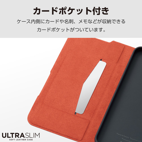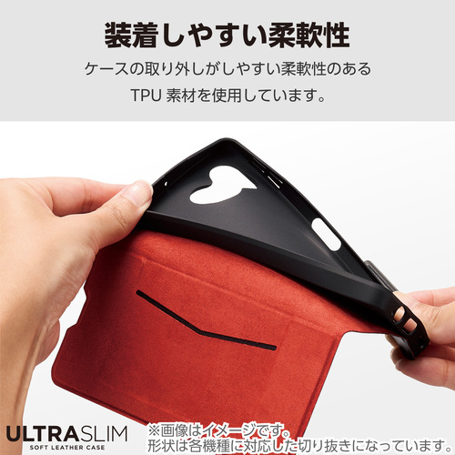 ●端末の薄さや軽さを損ねない、薄型・超軽量なウルトラスリムタイプのソフトレザーケース(手帳型)です。