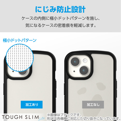 ●全周に配置した独自設計のエアークッションが衝撃を吸収し、側面に弾力性のあるTPU素材を、背面に高硬度のポリカーボネート素材を使用した、TOUGH SLIM LITEケースです。