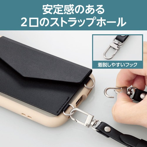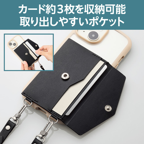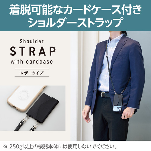 ●肩から掛けられ、バッグやポケットから取り出さなくてもすぐにスマートフォンの操作ができるカードケース付きショルダーストラップです。