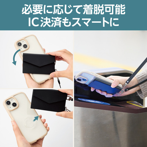 ●サッと着脱できるので、ICカード決済を利用するときにスマートフォンからカードケースをスムーズに取り外してかざすことができます。