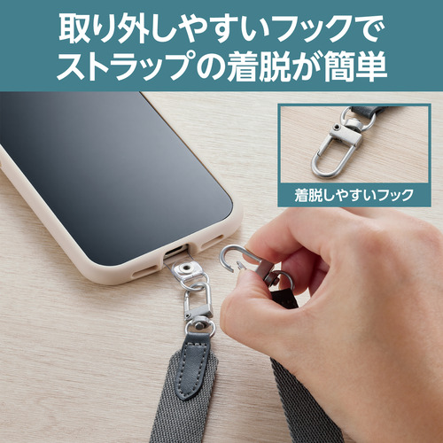 ●取り外しやすいフックを使用しているので、ストラップの着脱が簡単にできます。
