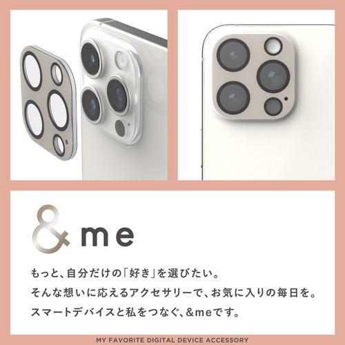 エレコム PM-A23CFLLP5BE iPhone 15 Pro/Pro Max用 &me カメラレンズカバー ガラス カフェオレ