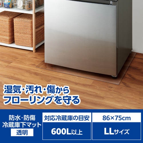 ●フローリングを湿気や汚れ、傷から守る、防水・防傷の冷蔵庫マットです。冷蔵庫を直接床に置いたときの傷やへこみ、シミなどのトラブルを防ぎ、きれいな状態をキープ。透明度が高いクリアタイプなのでお部屋やキッチンの雰囲気を邪魔しません。