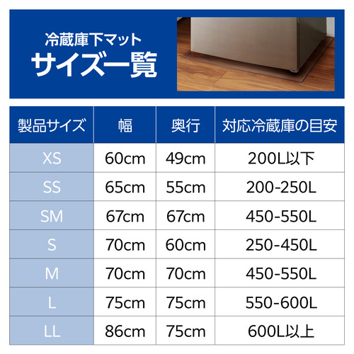 ●フローリングを湿気や汚れ、傷から守る、防水・防傷の冷蔵庫マットです。