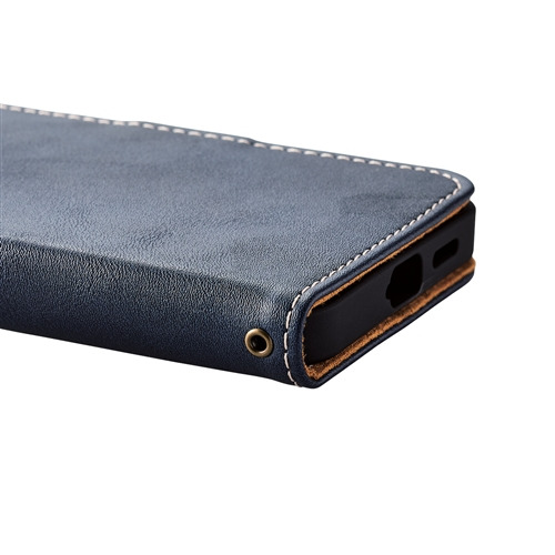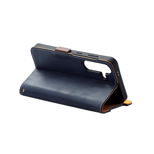 エレコム PM-G241PLFYNV Galaxy S24 ソフトレザーケース 磁石付 耐衝撃 ステッチ ワイヤレス充電可 スタンド機能付 ネイビー