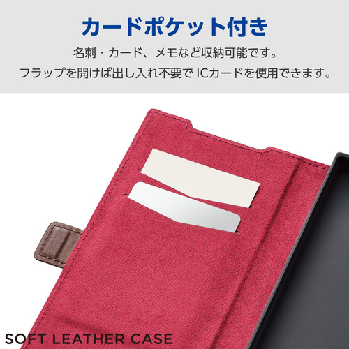 ●便利な機能を搭載した、革のようなやわらかな風合いのソフトレザーケース(手帳型)です。