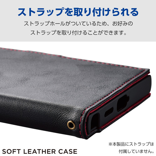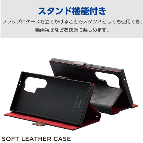 エレコム PM-G242PLFYBK Galaxy S24 Ultra ソフトレザーケース 磁石付 耐衝撃 ステッチ ブラック