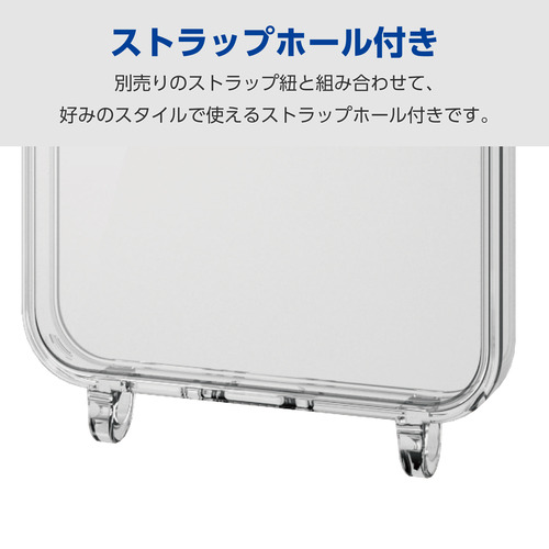 ●持ち運びに便利なスマホショルダーストラップやハンドストラップが取り付けられるストラップホール付き。側面には弾力性があるTPU(熱可塑性ポリウレタン)素材を、背面には強じんで透明度の高いポリカーボネート素材を使用した、スリムなスタイルのハイブリッドケースです。