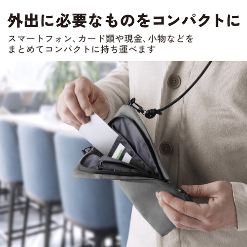 ●スマートフォン、カード類や現金、小物など必要なものをまとめてコンパクトに持ち運べるショルダーポーチです。
