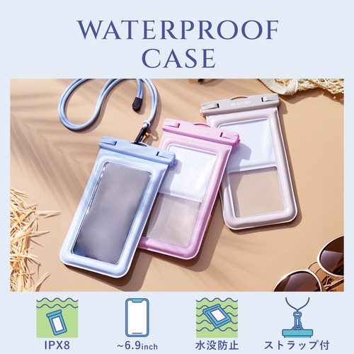 ●JIS保護等級IPX8相当の防水性能を実現する、水深約10mで30分までの防水テストをクリアしたフロート機能付きスマートフォン用防水ケースです。屋外で水や汚れを気にせず使用でき、装着したまま写真や動画撮影も可能!水没防止設計で海やプールでの使用も安心です。