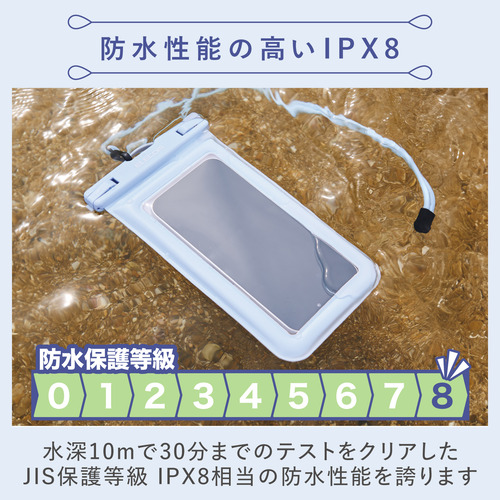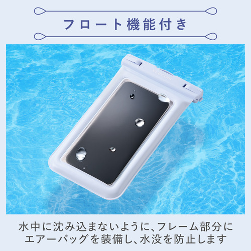 ●JIS保護等級IPX8相当の防水性能を実現する、水深約10mで30分までの防水テストをクリアしたフロート機能付きスマートフォン用防水ケースです。