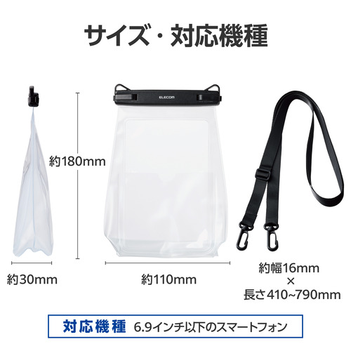 エレコム P-WPSG05BK スマートフォン用防水ケース IPX8 マチ付きタイプ