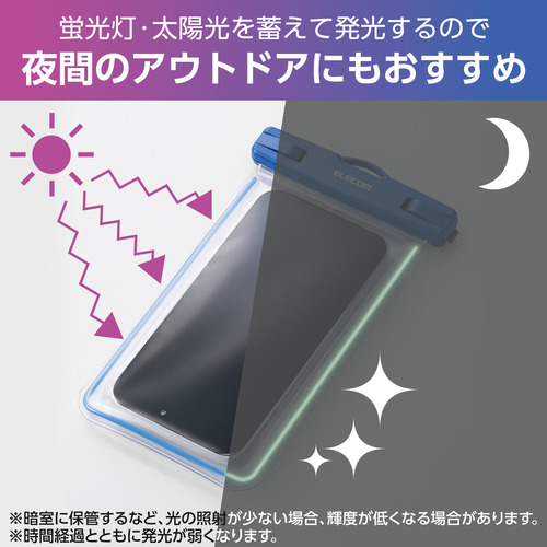 エレコム P-WPSL05BU スマートフォン用防水ケース IPX8 蓄光タイプ