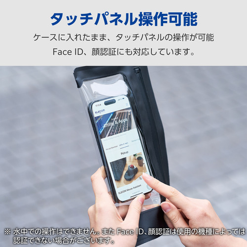 ●JIS保護等級IPX8相当の防水性能を実現する、水深約10mで30分までの防水テストをクリアした気密ファスナータイプのスマートフォン用防水ケースです。屋外で水や汚れを気にせず使用でき、装着したまま写真や動画撮影も可能!気密性の高いファスナーを使用することで、防水性能とデザイン性を両立した防水ケースです。