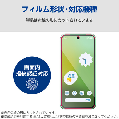 ●※フィルムを装着した状態で画面内指紋認証機能を利用する場合は、装着した状態で指紋の再登録を行ってください。