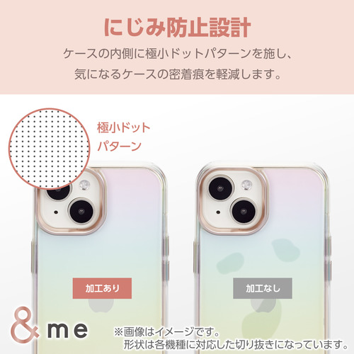 ●オーロラのような輝きが美しい、ポリカーボネートとTPU(熱可塑性ポリウレタン)の2素材を組み合わせた、&meシリーズのハイブリッドケースです。