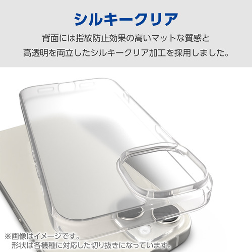●背面のポリカーボネート素材には、指紋が付きにくく高い透明度を両立した特殊加工「シルキークリア」を施しています。