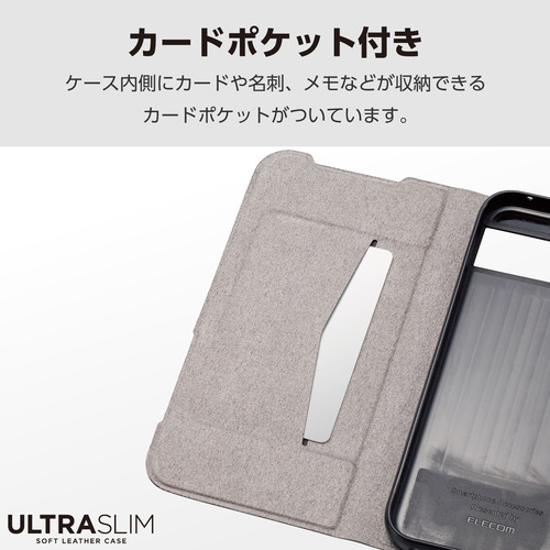 ●端末の薄さや軽さを損ねない、薄型・超軽量なウルトラスリムタイプのソフトレザーケース(手帳型)です。