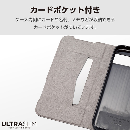 ●端末の薄さや軽さを損ねない、薄型・超軽量なウルトラスリムタイプのソフトレザーケース(手帳型)です。