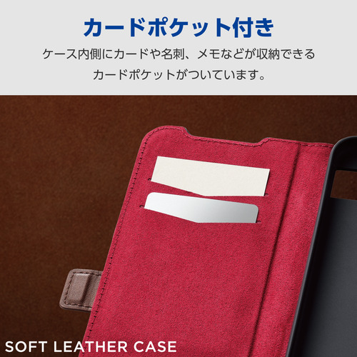 ●便利な機能を搭載した、革のようなやわらかな風合いのソフトレザーケース(手帳型)です。