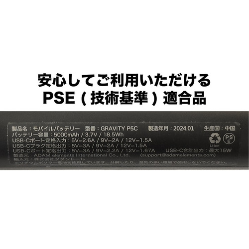 GRAVITY P5Cは2台のデバイスに対しての充電をサポートしています。
