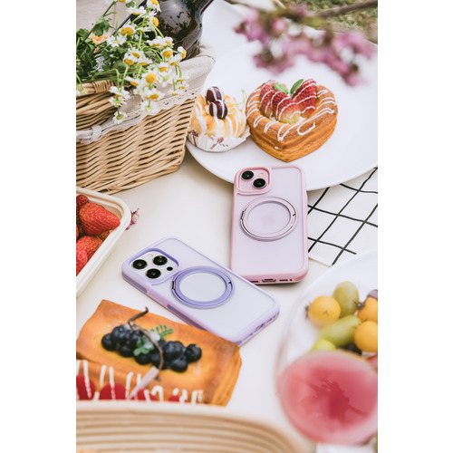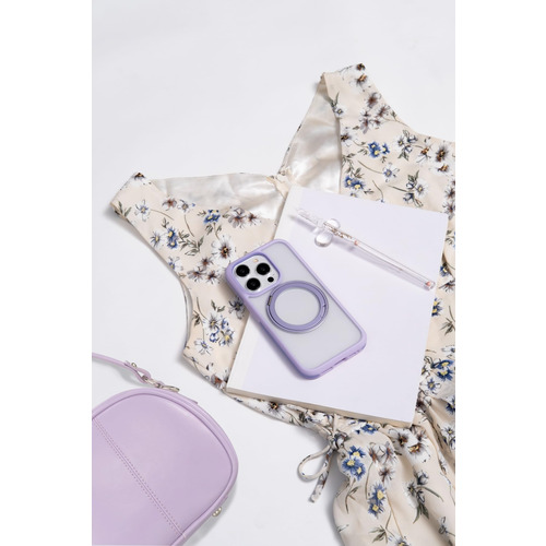 滑り止め凹面デザインで握りやすく、指紋やほこりがつきにくいコーティングも備えています。マグネットスタンドは360度回転可能で、MagSafeアクセサリにも対応しています。ストラップホールあり。