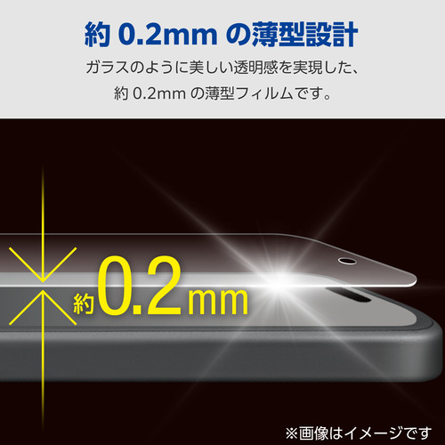 ●ガラスのように美しい透明感を実現!割れに強く、ガラスと同じ高硬度9Hの薄型高透明タイプの画面保護フィルムです。
