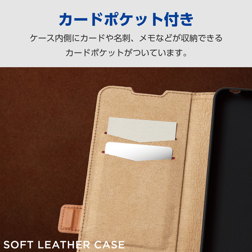 ●便利な機能を搭載した、革のようなやわらかな風合いのソフトレザーケース(手帳型)です。
