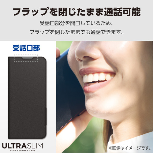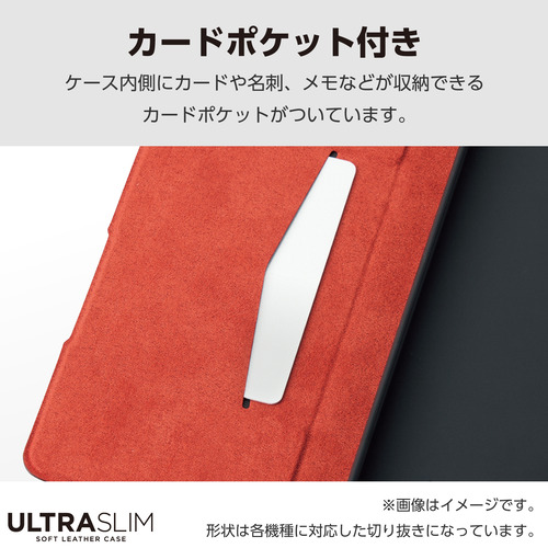 ●端末の薄さや軽さを損ねない、薄型・超軽量なウルトラスリムタイプのソフトレザーケース(手帳型)です。