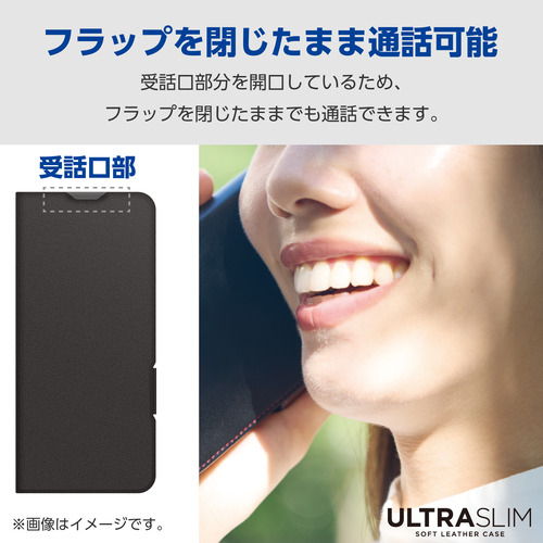 ●端末の薄さや軽さを損ねない、薄型・超軽量なウルトラスリムタイプのソフトレザーケース(手帳型)です。