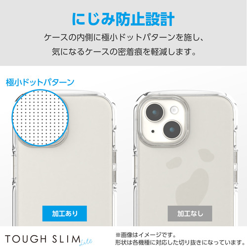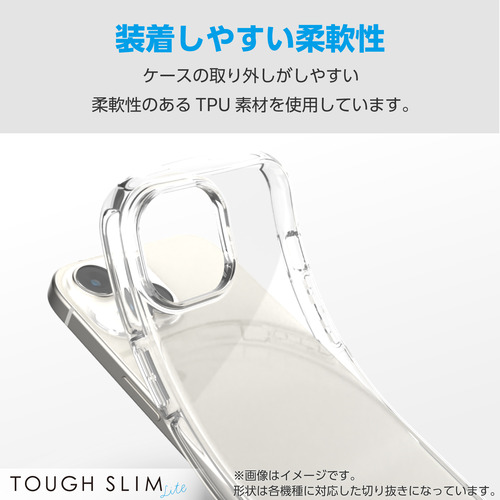 ●強じんな耐久性としなやかな弾力性をあわせ持つ、TPU(熱可塑性ポリウレタン)素材を使用した、端末のデザインが美しく際立つオールクリアタイプのTOUGH SLIM LITEケースです。