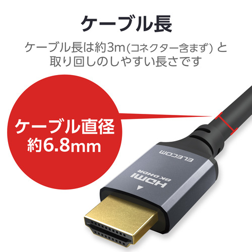 エレコム GM-HD21E30BK HDMI 2.1 ケーブル ウルトラハイスピード 3m 8K 60Hz PS5 PS4 Switch Xbox対応 ブラック