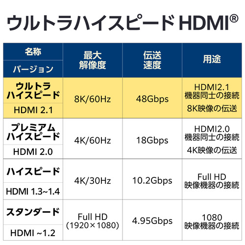 規格:ウルトラハイスピードHDMI(R)ケーブル認証品