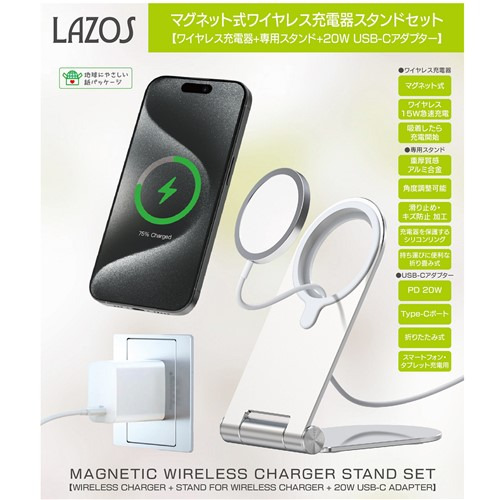 Lazos L-MAS-SET マグネット式ワイヤレス&充電器スタンドセット シルバー