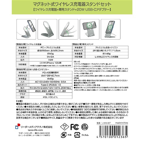 Lazoa L-MAS-SET マグネット式ワイヤレス&充電器スタンドセット シルバー