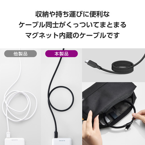 ●マグネット内蔵のケーブルできれいにまとまるUSB Type-C(TM)(USB2.0)ケーブルです。