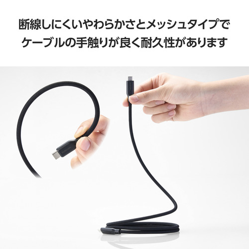 ●断線しにくいやわらか+メッシュタイプ。ケーブル表面にメッシュ加工を施すことで、やわらかさとナイロンメッシュの耐久性を持ち合わせた手触りの良いケーブルです。