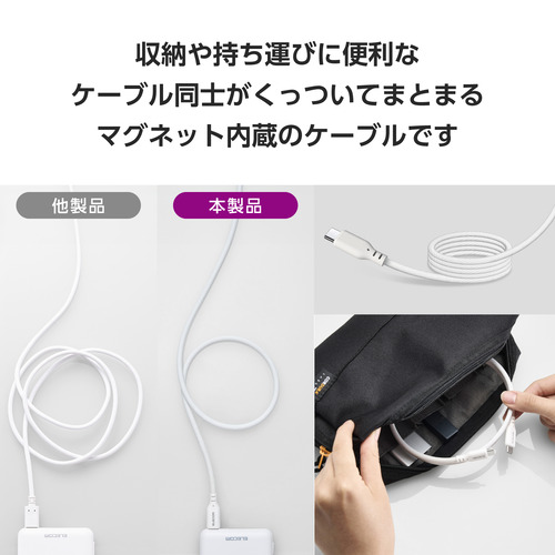 ●マグネット内蔵のケーブルできれいにまとまるUSB Type-C(TM)(USB2.0)ケーブルです。